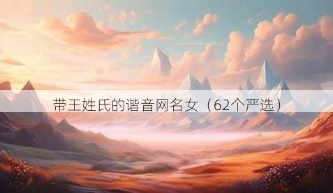 嗨,姐妹们!在网络的世界里,拥有一个独特又好听的网名就像给自己披上了一件个性的外衣,尤其是对于咱们女生来说,带王姓氏的谐音网名简直太有趣啦,既包含了姓氏又有巧妙的寓意,下面就给大家分享62个超棒的带王姓氏的谐音网名,每个都带符号哦,快来看看有没有戳中你心巴的~