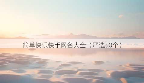 嘿,朋友们!今天来和大家分享一些超有趣的简单快乐快手网名哦😃,这些网名各具特色,能展现出不一样的个性呢。