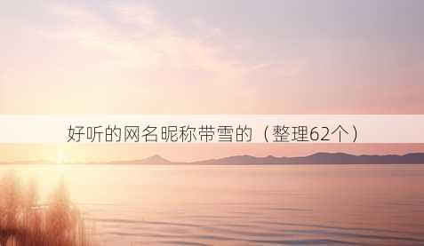 雪,总是带着一种纯净与梦幻,让人不禁心生向往,它像是冬日里的精灵,轻轻地飘落,给世界披上一层洁白的纱衣,今天就来和大家分享一些超好听的带雪的网名昵称。