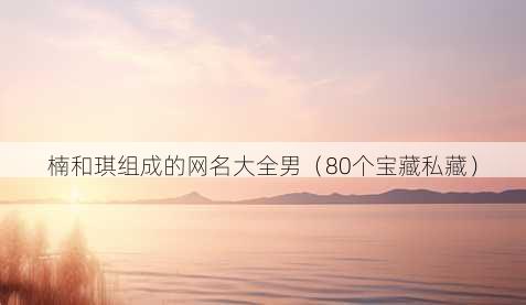 嘿,朋友们!今天来给大家分享一些超有个性的网名哦,这些网名可是围绕着楠和琪精心打造的,特别适合男生呢。