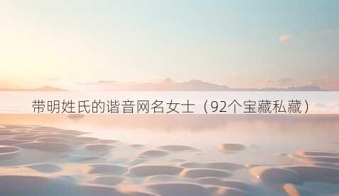 在网络的奇妙世界里,有不少独具韵味的女士网名,其中带明姓氏谐音的更是别具一格,它们有的俏皮可爱,有的优雅迷人,有的则充满创意,仿佛一颗颗璀璨的星星,点缀着网络空间,就为大家精心呈上 92 个不重复且带有符号的带明姓氏谐音网名。