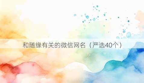 嘿,朋友!在网络的世界里,一个好的网名就像是我们的个性名片,能展现出独特的自我,而和“随缘”有关的网名,总是带着一种洒脱、淡然的气质,让人忍不住想要细细品味,今天呀,就给大家分享 40 个不重复带符号的和随缘有关的微信网名,每一个都有它独特的韵味哦。